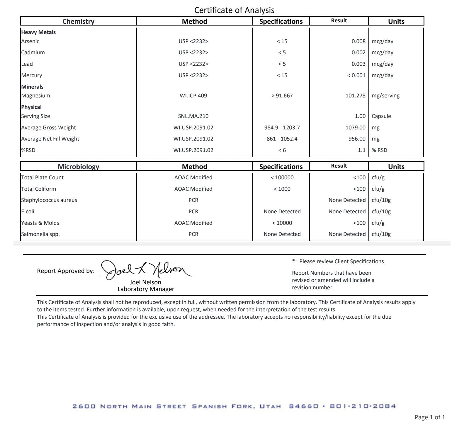 Magnesium glycinate is formulated to support optimal nerve function, muscle contractions, cardiovascular, bone health, and decreased anxiety. Our formula is third party independently tested for heavy metals, impurities, made in the USA, GMP certified, and produced in an FDA registered facility. 1% of the supplements on the market can match our world class standards. |