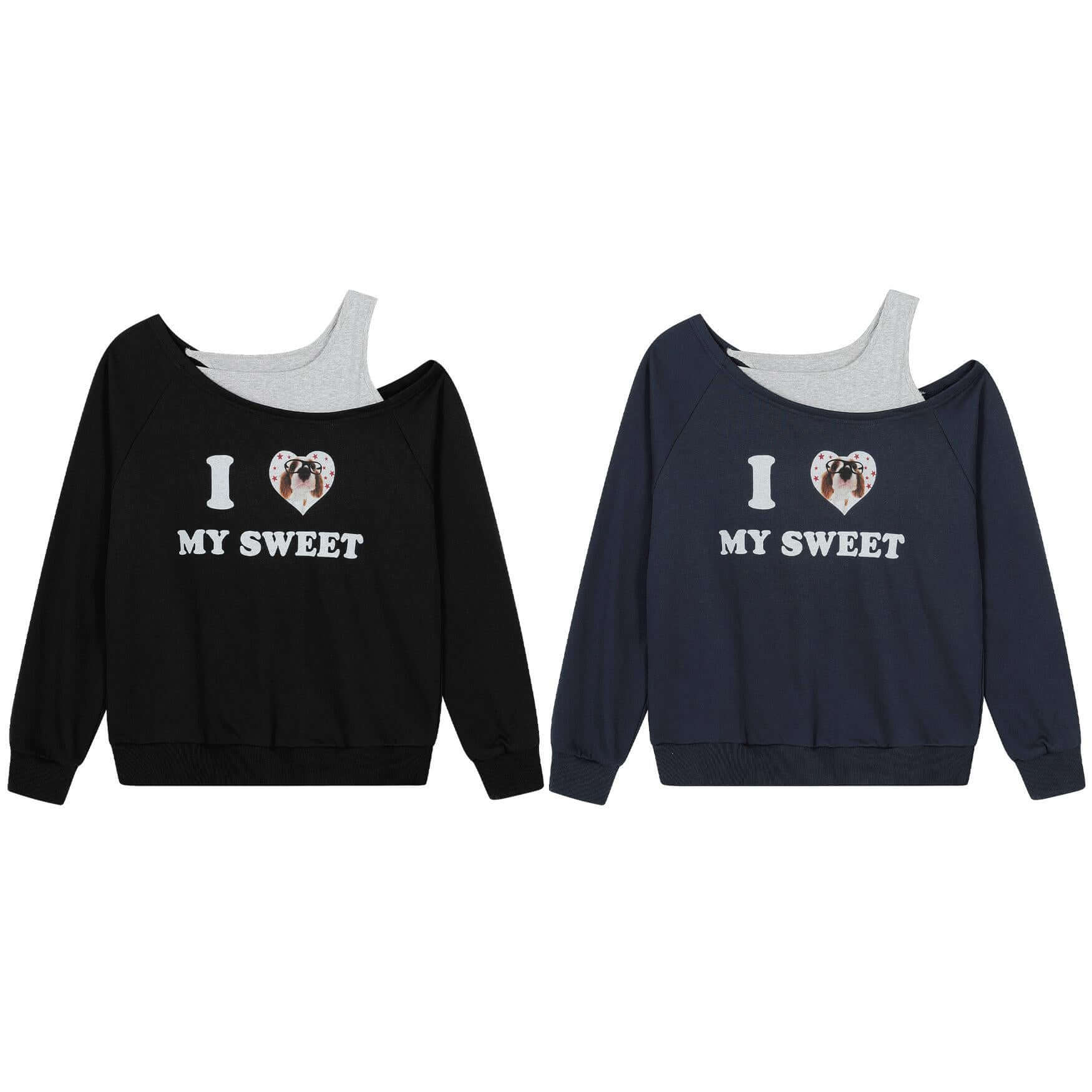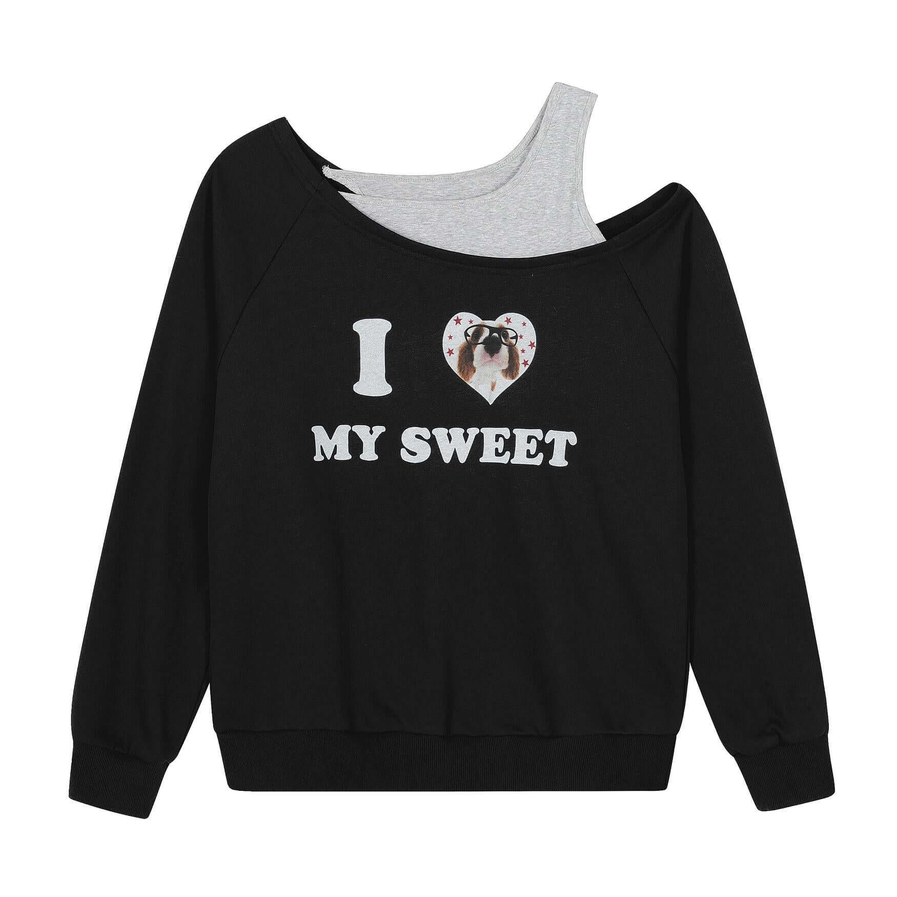 Sporty Dog Lovers Warm Printed Sweatshirt ❤️ Slope Collar Cross Shoulder Long Sleeve