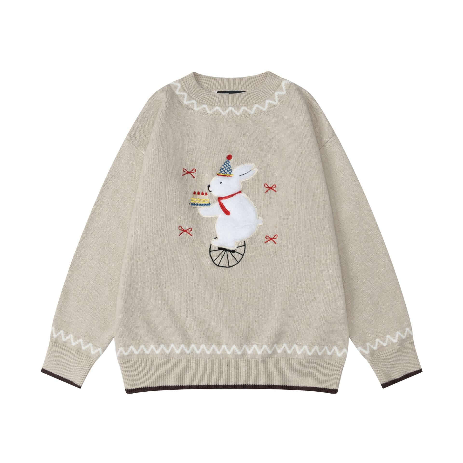 Women's Casual Round Neck Sweater - Vintage Cute Rabbit Plush 🐰 Embroidered